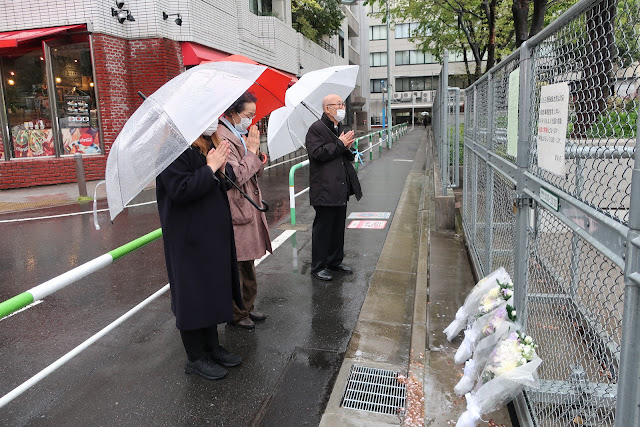 4月13日、新コロナウイルスの問題で今年の追悼会は中止をし、名簿の方300人に中止のお葉書を急遽送りました。ポスターは区の掲示板に100枚、心ある町会も町会掲示板に掲示していただいてます。南池袋公園に来られる方が居るかもしれないと、南池袋公園の4つの出入り口に中止のお知らせを貼りました。